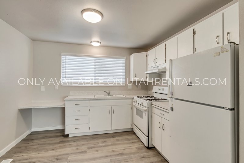 Welcome to this beautifully updated 2-bedroom, 1-bathroom upper-floor apartment in a well-maintained fourplex located in the heart of Orem! Recently renovated with modern luxury vinyl plank (LVP) flooring and fresh paint throughout, this apartment offers a clean, contemporary feel. The spacious living area is bright and open, perfect for relaxing or entertaining, with large windows providing plenty of natural light.